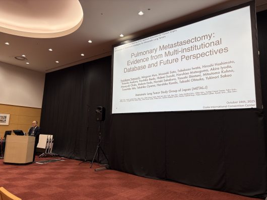 山内良兼准教授 講演 シンポジウム 呼吸器5 転移性肺腫瘍の治療戦略『転移性肺腫瘍に対する肺切除術:多施設データベースが示すエビデンスと今後の展望』